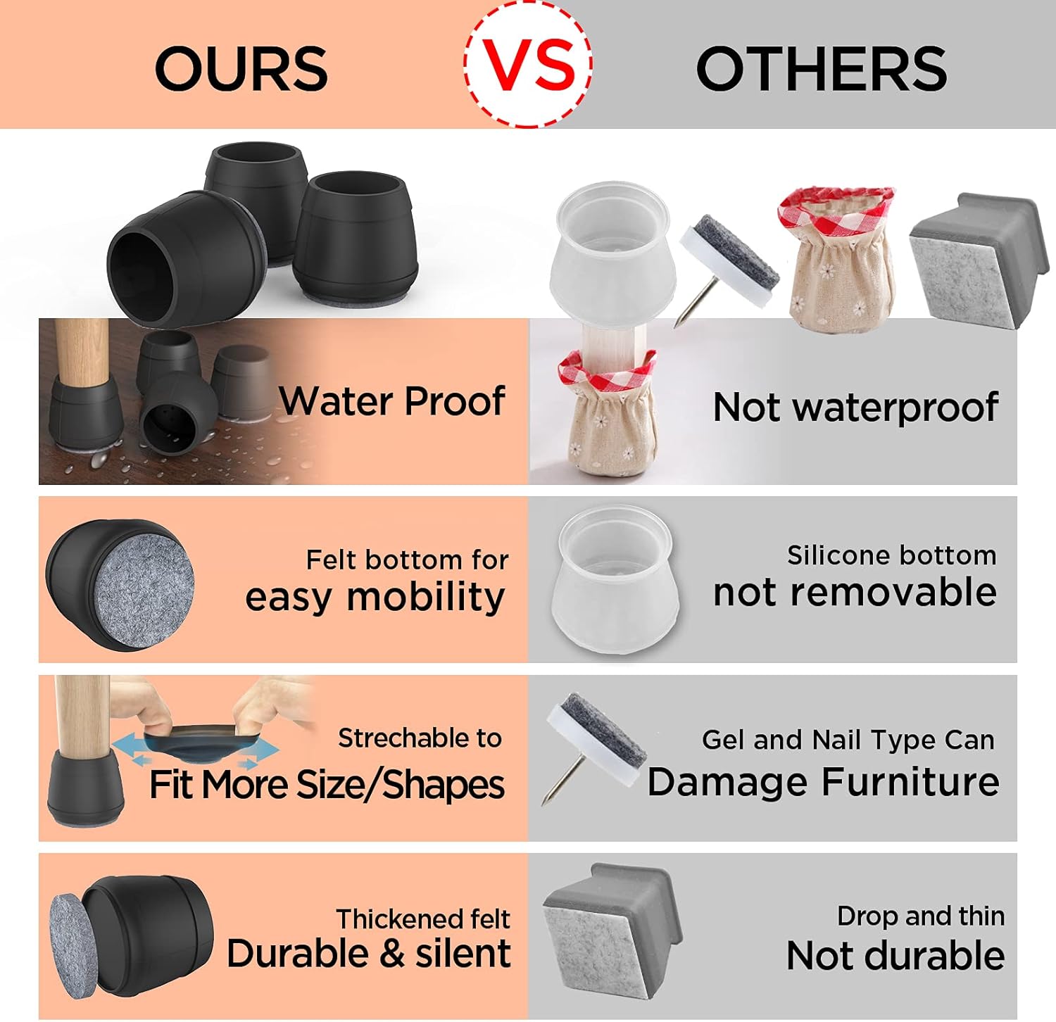 مناسب برای انواع پایهها: این روکشها برای انواع مختلف پایهها از جمله فلزی، چوبی، گرد، مربع و مستطیلی مناسب هستند و برای پایههای توخالی فلزی ایدهآل میباشند.